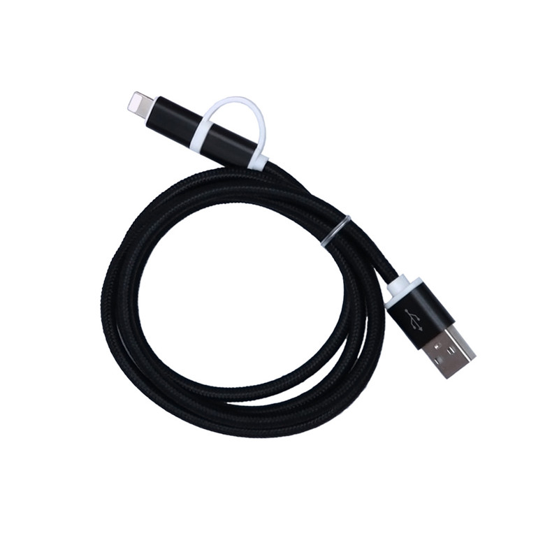 Textilkabel 2 in 1 MicrousB/iPhone - Schwarz