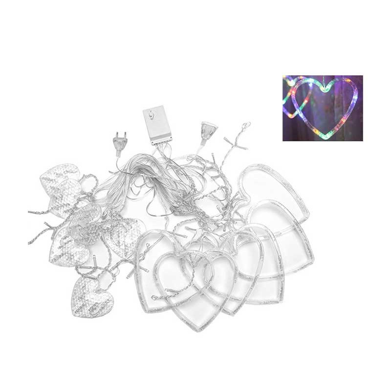 Lichterkette 12 Herzen, mehrfarbig, 3m