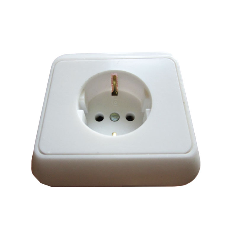 Schukosteckdose aus weißem Bakelitmaterial, geeignet für den einfachen Einbau in