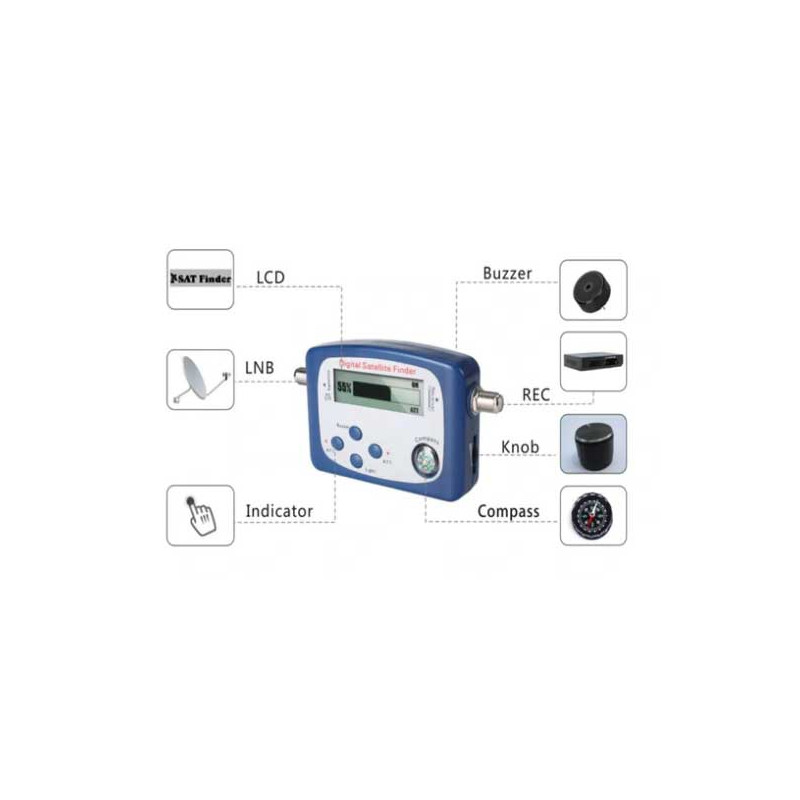 Gerät zur präzisen Ausrichtung von Satellitenantennen, ausgestattet mit LCD -Bildschirm für die klare Signalanzeige. Einfach zu bedienen, ideal für schnelle und korrekte Installationen.