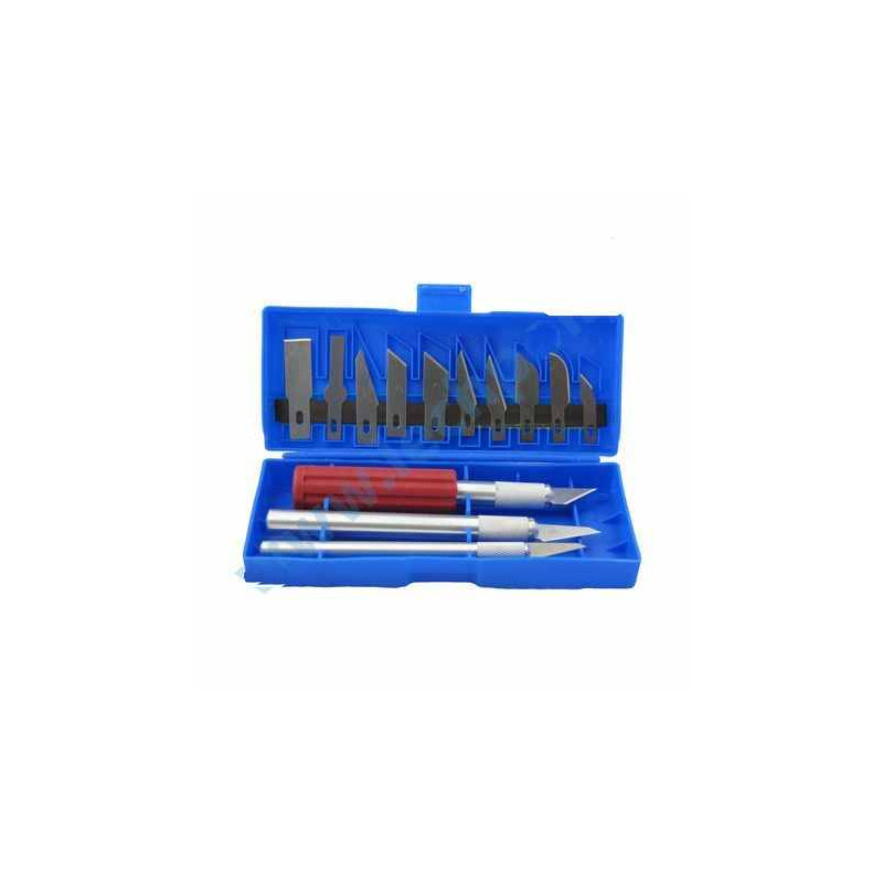 Präzisionssatz aus 13 Teilen, ideal für feine Schnitte in Modellierung, Elektronik, Kunst oder unterschiedlichen Reparaturen. Enthält austauschbare Griffe und Klingen.