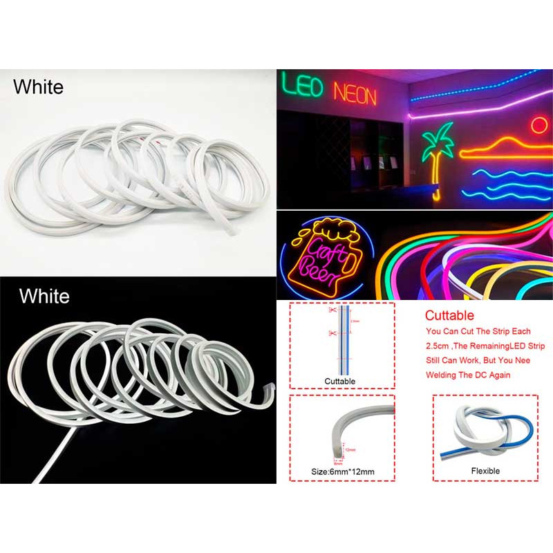 flexible LED tube for car decorative lighting, 5 meters long, powered at 12V, with intense and uniform white light. Ideal for customizing the interior or exterior of the machine.