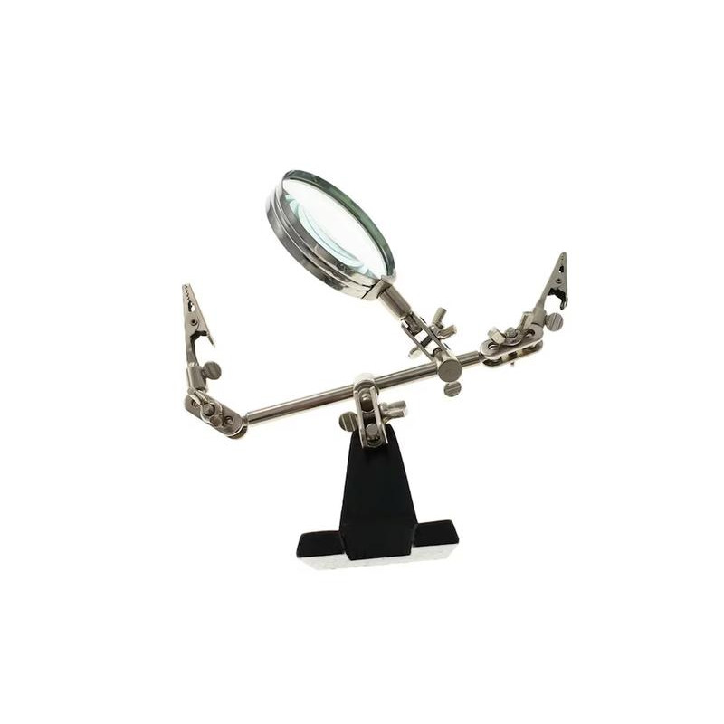 Work magnifying glass with a diameter of 60mm, provided with adjustable arm, fixing clips and stable support for use on the table. Ideal for precision works in electronics, jewelry or hobbies.