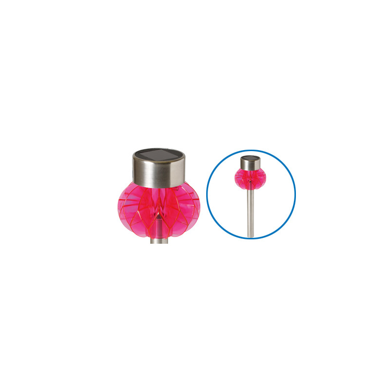 dekoracyjna lampa słoneczna na zewnątrz, z nowoczesnym designem i wielokolorowym oświetleniem. Działa na podstawowym
