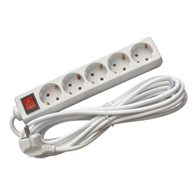 Wydłużenie elektryczne z 5 gniazdami, 3 -metrowe kable i przewodniki 3x1,5 mm², wyposażone w przełącznik do szybkiej kontroli. Idealny do użytku gospodarstwa domowego lub biura.