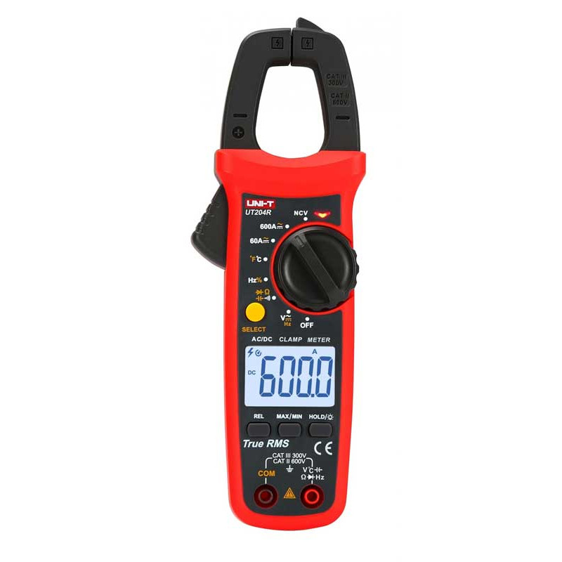 UT204R poate măsura tensiunea AC/DC, curentul AC/DC, rezistența, capacitatea și frecvența. În plus, poate măsura și temperatura. Are o funcție de auto-gamă care selectează automat domeniul de măsurare corect pentru funcția de măsurare selectată. Cu afișajul său de 6000 de numărări, UT204R asigură măsurători precise. Deschiderea clemei de 28 mm facilitează operarea, mai ales atunci când se măsoară cabluri sau conductori mari. Funcția de testare a continuității și a diodei este, de asemenea, extrem de utilă pentru depanarea electrică, în timp ce funcția de stocare a datelor cu un mod MAX/MIN și relativ vă asigură că aveți întotdeauna acces la cele mai recente citiri. Alte caracteristici care fac din clemă digitală UT204R un dispozitiv versatil includ indicatorul de baterie descărcată și funcția de oprire automată, care economisește bateriile.