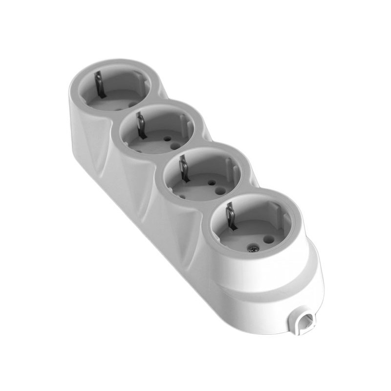 Cap prelungitor cu 4 prize, fabricat din material cauciucat rezistent, de culoare albă, conceput pentru utilizare în condiții so