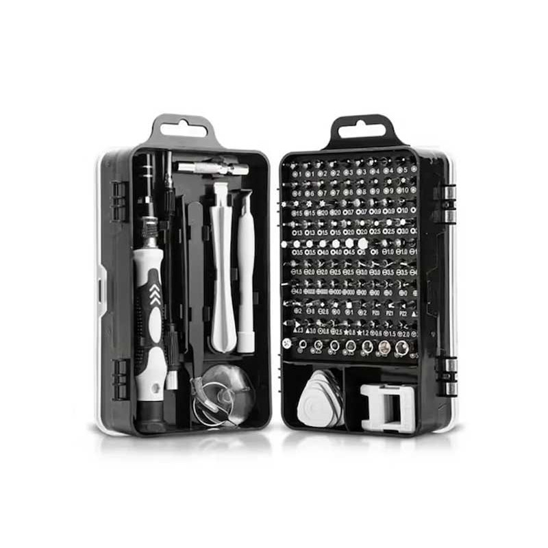 Setul contine capete de precizie, surubelnite, penseta cu varf ascutit, magnetizator/demagnetizator, ventuza pentru indepartarea sticlei, pin pentru carduri SIM si deschizatoare de carcase. Fiecare piesa dispune de propriul loc pentur depozitare.